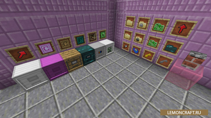Модификация позволит вам улучшить систему хранения. С помощью новых блоков и предметов вы сможете удобно разместить и отсортировать свои предметы.