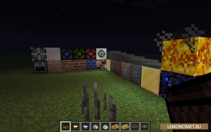 Новые блоки: The Viewed Block - когда Вы на него смотрите, то он испускает частицы как редстоун. Smooth glowstone - как светящийся блок, только не такой страшный. Polished glowstone - выглядит как блок выше, но светит ярче! Snow brick - из кирпича из снега можно делать крутые постройки в снежных биомах. Stained redstone lamps - лампа из редстоуна The Block Breaker - ломает блок перед собой, подойдёт для ферм. The Block Placer - ставит блок перед собой. Crying Obsidian - куда Вы его поставите, там и будет Ваша точка спавна. Spike blocks - пики для ловушек. Decorative stone variants - новые декоративные варианты камня. New bricks - новые кирпичи разных цветов. Slate - новый вид ступенек. Blaze Block - испускает дым, выглядит очень круто.