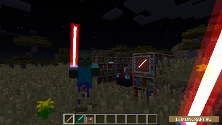 Мод ToLaserBlade добавляет в игру красивый лазерный меч. Этот меч вы сможете улучшать, увеличивая скорость атаки и наносимый урон. Так же в зависимости от температуры в вашем мире меч будет менять свой цвет. Крафт данного меча занимает примерно пол часа, а в ночи этот меч смотрится просто отпадно.