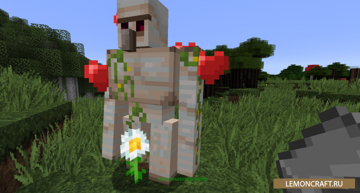 Мод на лечение голема Golem Healer позволит восстанавливать здоровье железного голема с помощью железных слитков. Каждый слиток железа добавит голему 10 единиц здоровья.