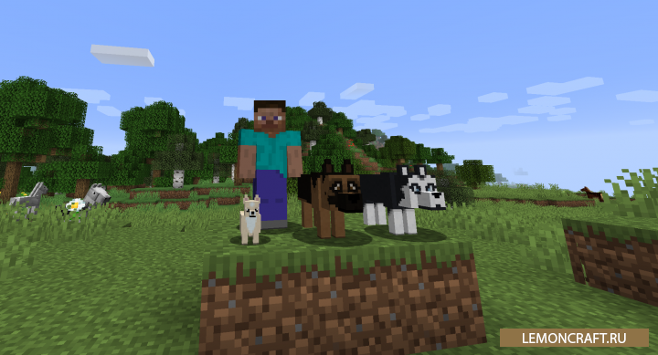 Мод на новых собак More Dogs добавляет в игру новые породы собак, которые существуют в реальном мире. На данный момент мод добавляет три породы: чихухуа, немецкая овчарка, хаски. Чихухуа вы сможете увидеть только в пустынных биомах, немецкую овчарку в лесах, а хаски только в биомах с отрицательной температурой. Приручить данных собак не составит особого труда, для этого вам понадобятся кости. Хвост у данных животных показывает их состояние здоровья, чем ниже он опущен тем меньше у них ХП. Для восстановления здоровья вашим питомцам потребуется мясо.