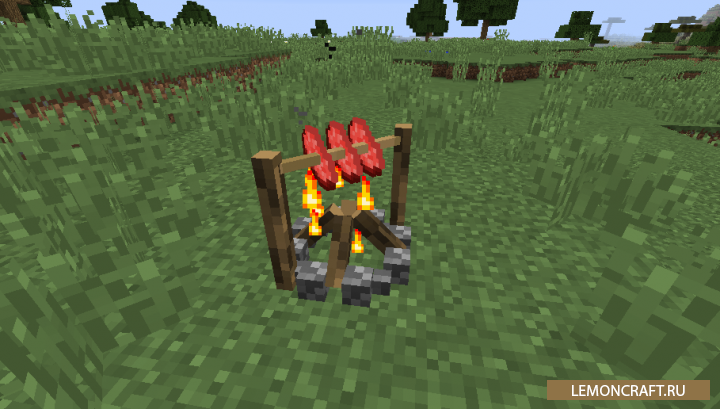 Мод на вертел TAN Campfire Spit небольшой аддон для мода Tough As Nails, который добавит в игру такой полезный инструмент, как вертел. С помощью данного инструмента вы сможете приготовить пищу прямо на костре. Над костром появится специальная конструкция из дерева, которая позволит приготовить до 3-х кусков мяса.